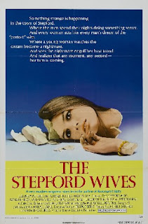 THE STEPFORD WIVES (Bryan Forbes, 1975, USA) Stepford Connecticut is a Disneyesque nirvana for the patriarchal hierarchy, the template for male entitlement, which allows abusive relationships to prosper: a prescient and dire warning concerning domestic violence awareness. The film is a satire about male entitlement, ultimate power and control, representing the social enslavement of the burgeoning feminist movement. The film begins with a blind female mannequin being carried by a man: a plastic metaphor foreshadowing the inhuman narrative. As Joanna and Walter leave the city, Michael Small’s derivative score plays like some TV soap opera, which will contrast the brooding horror to come. Director Bryan Forbes sets the film amid the beautiful friendly suburbs, bathing the film in bright daytime afternoon delight; he allows the friction between the couple to crescendo as a family melodrama. But monsters lurk in the shadows of Stepford and gather at a dark secluded mansion, home of the Stepford Men’s Association. Joanna befriends Bobbie, another braless newcomer in town; they attempt to subvert the superficial and wholesome aura of this strange environment. When they finally convene a meeting of Stepford wives to create their own feminist association, they discover a mindless and one-dimensional attitude: these women exist only to clean and serve their husbands. They spout commercial jingles and speak earnestly of their housework, like drones…or robots. William Goldman’s script builds the suspense like tiny cogs that firmly fit together: from Joanna’s cluttered kitchen to Charmaine’s new attitude, and when Bobbie finally succumbs to the disease that proliferates the town Joanna believe she is going crazy. When Joanna voices her concerns, the horror cannot be explained in mere words, and she veers towards a nervous breakdown. Finally, her doppelganger sees through her eyes darkly, and she is subsumed into the great American Dream. (B+)